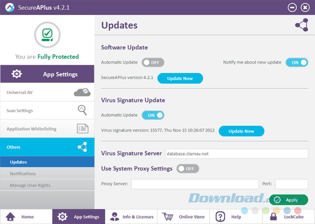 Ngoài ra, cũng có thể điều chỉnh một số thay đổi để SecureAPlus tự động cập nhật hoặc sẽ cập nhật bằng tay.