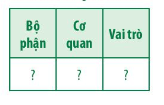 Câu hỏi 4: Trình bày vai trò của các bộ phận trong quá trình điều hòa cân bằng nội môi bằng cách hoàn thành bảng bên dưới.