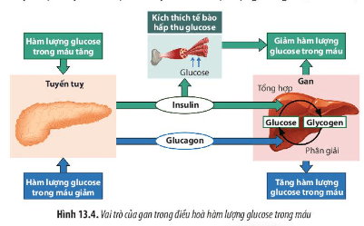 Câu hỏi 7: Quan sát Hình 13.4, hãy mô tả cơ chế điều hòa hàm lượng đường trong cơ thể. Từ đó giải thích tại sao gan đóng vai trò quan trọng trong việc duy trì cân bằng nội môi