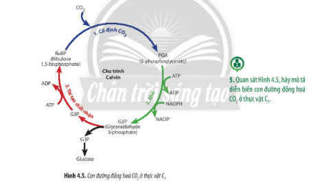 Câu hỏi 5: Quan sát Hình 4.5, hãy mô tả diễn biến con đường đồng hóa CO2 ở thực vật C3