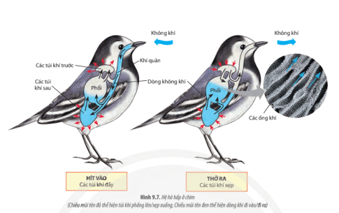 Câu hỏi 7: Quan sát Hình 9.7, hãy trình bày hình thức trao đổi khí ở chim