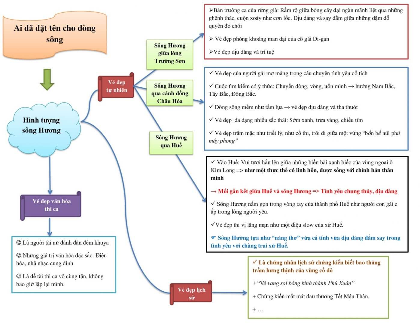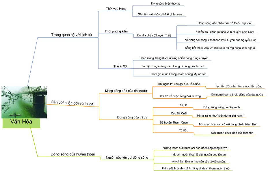 Qua sơ đồ tư duy Ai đã đặt tên cho dòng sông giúp các em học sinh lớp 12 nhanh chóng nắm vững, hệ thống, tóm tắt kiến thức tác phẩm dễ dàng hơn, để nhớ kiến thức lâu hơn. Ngoài ra các bạn xem thêm một số bài văn mẫu như: Cảm nhận về vẻ đẹp của dòng sông Hương khi ở thượng nguồn; cảm nhận vẻ đẹp sông Hương khi chảy vào thành phố Huế.