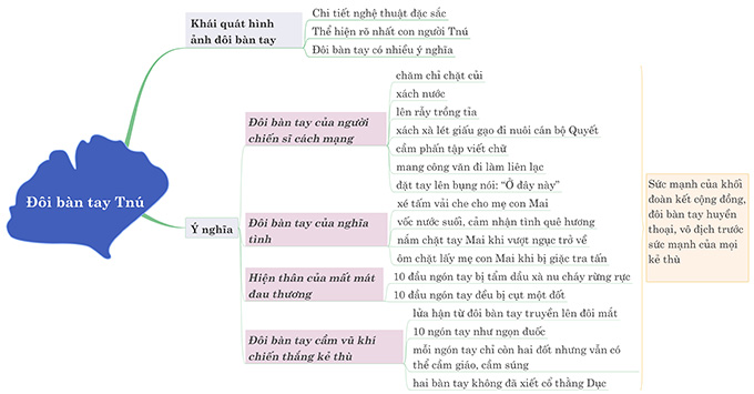 Sơ đồ tư duy phân tích hình ảnh đôi bàn tay Tnú