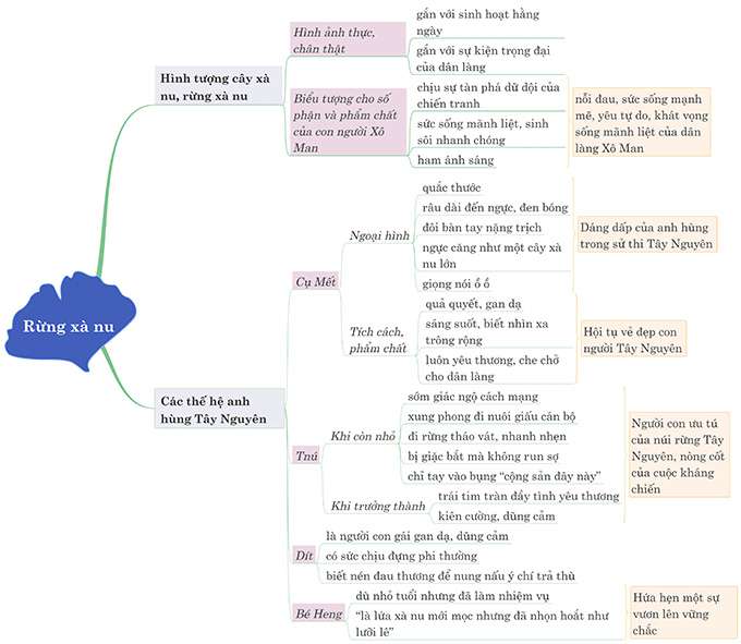 Sơ đồ tư duy bài Rừng xà nu Vẽ sơ đồ tư duy Rừng xà nu của Nguyễn Trung Thành