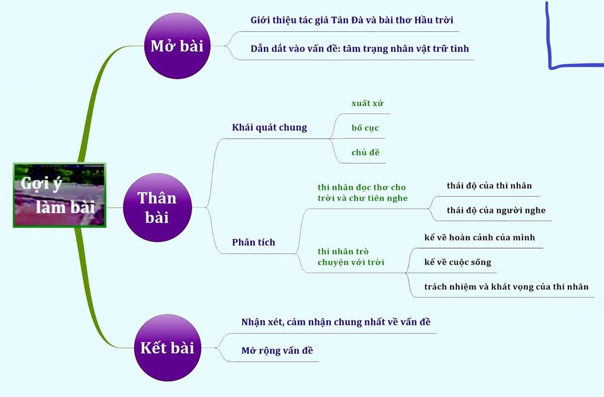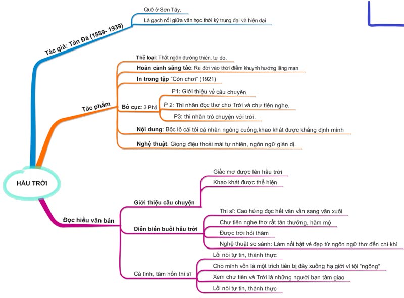 Tìm hiểu thêm »Sơ đồ tư duy Hầu trời của Tản Đà hệ thống toàn bộ kiến thức trọng tâm về phân tích bài thơ Tản Đà .... chi tiết, đầy đủ nhất.