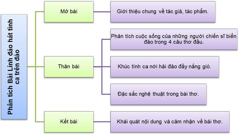 Lính đảo hát tình ca trên đảo được sáng tác vào năm 1982 trong một lần đi thăm những người chiến sĩ nơi đảo xa của nhà thơ Trần Đăng Khoa. Bài thơ được trích từ tập “Tuyển thơ” của nhà xuất bản Văn học. Bài thơ cho chúng ta thấy được những khó khăn, vất vả, thiếu thốn của người lính nơi biển đảo xa xôi ấy cũng như vẻ đẹp của tinh thần bất khuất, lạc quan yêu đời của họ. Bên cạnh sơ đồ tư duy các bạn xem thêm phân tích Lính đảo hát tình ca trên đảo.