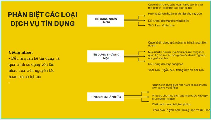 1. Phân biệt sự giống nhau và khác nhau giữa các dịch vụ tín dụng:
