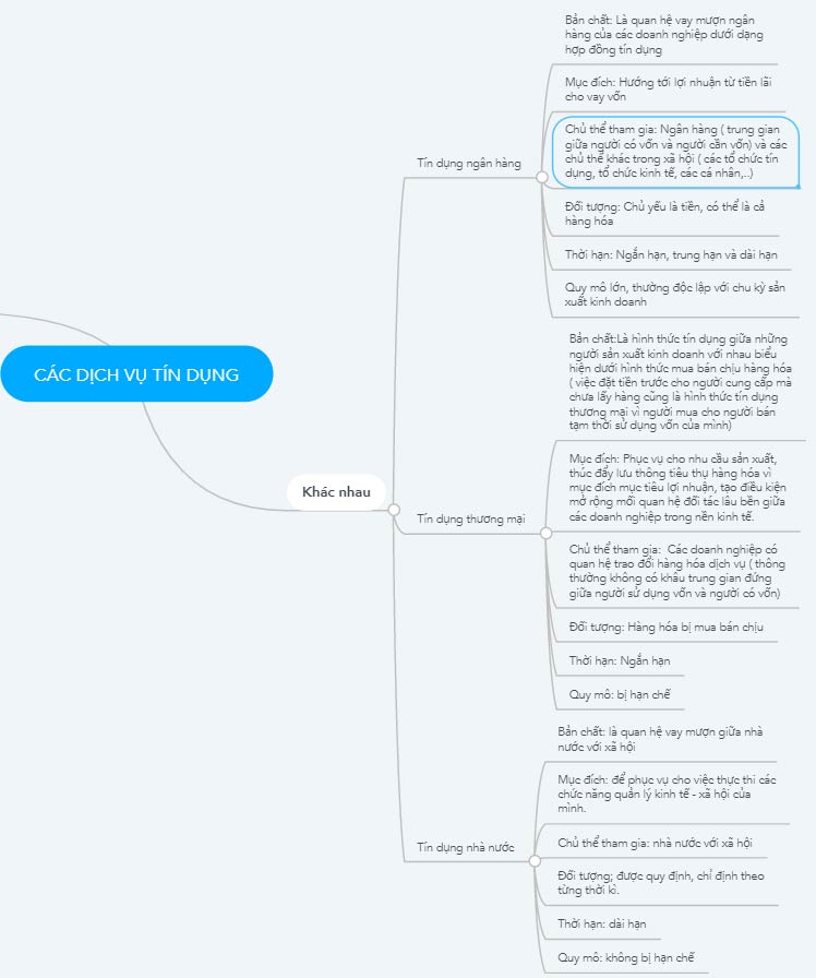 Sơ đồ tư duy phân biệt sự giống nhau và khác nhau giữa các dịch vụ tín dụng Phân biệt các dịch vụ tín dụng