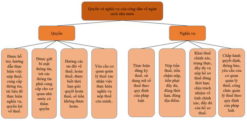 Đề bài: Vẽ sơ đồ tư duy về quyền và nghĩa vụ của công dân trong thực hiện pháp luật về thuế để tuyên truyền cho bạn bè, người thân.