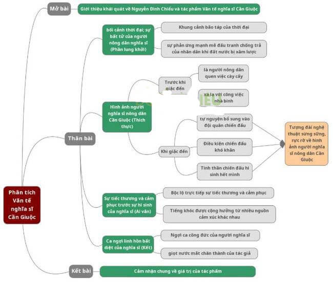 Sơ đồ tư duy bài Văn tế nghĩa sĩ Cần Giuộc Vẽ sơ đồ tư duy Văn tế nghĩa sĩ Cần Giuộc