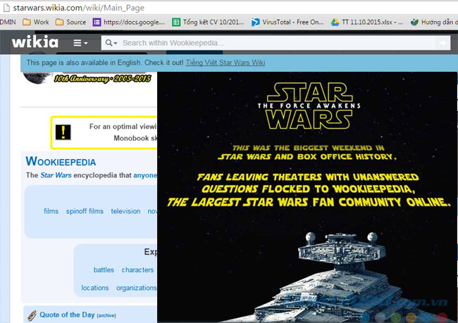 Từ các banner, thông tin về phim, nhân vật, các trận chiến... tất cả đều được các fan hâm mộ cung cấp trên địa chỉ này. Nếu chưa hiểu rõ hay chưa biết thông tin gì? Về ai? Hay thế nào? Thì Star Wars Wikia chính là cuốn từ điển bổ ích nhất bạn có thể tìm được.
