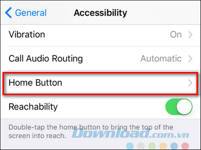 Bước 4: Kéo xuống dưới và tìm Home Button, chọn vào đó.