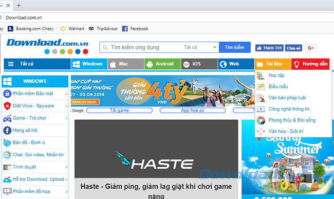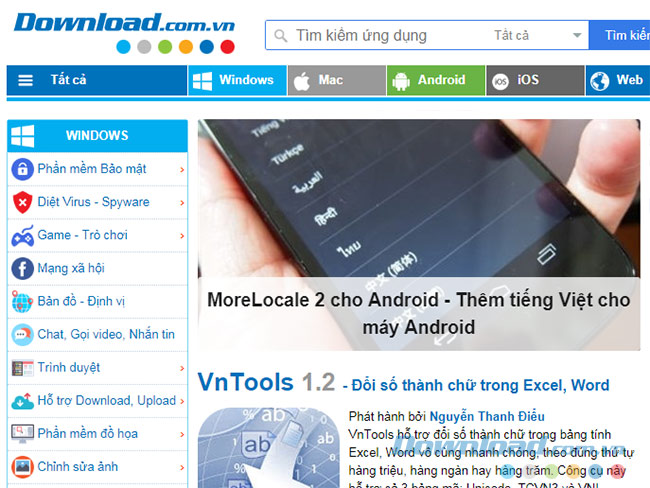 Bước 1: Mở trình duyệt, truy cập trang. Từ giao diện chính có thể thấy rất nhiều loại ứng dụng, trò chơi khác nhau, click vào đó để tìm phần mềm, game đang cần.