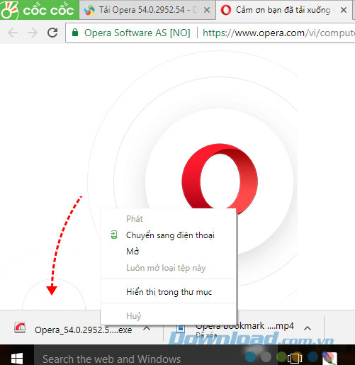 Khi quá trình tải kết thúc, có thể nhấn chuột trái vào mục bên dưới để cài đặt hoặc chuột phải vào đó và Hiển thị trong thư mục.