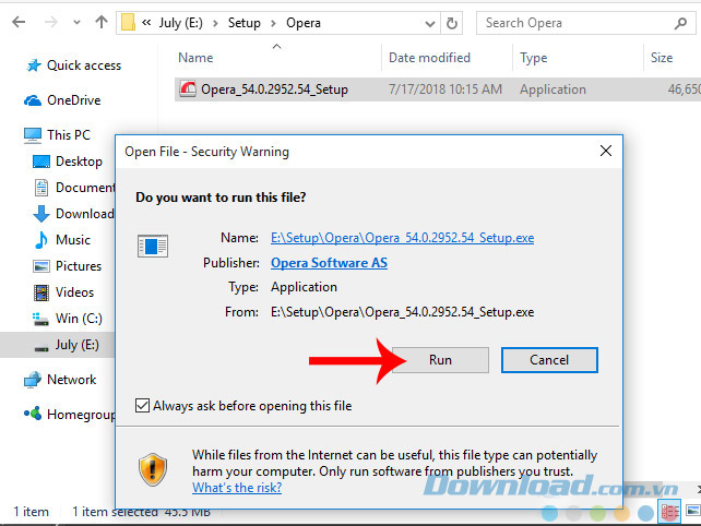 Sau đó click đúp chuột trái vào file Setup / Run để cài phần mềm máy tính.