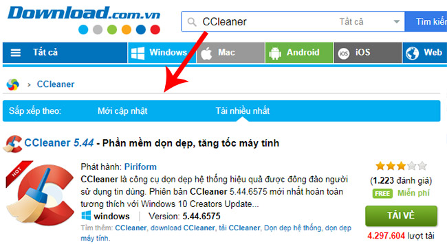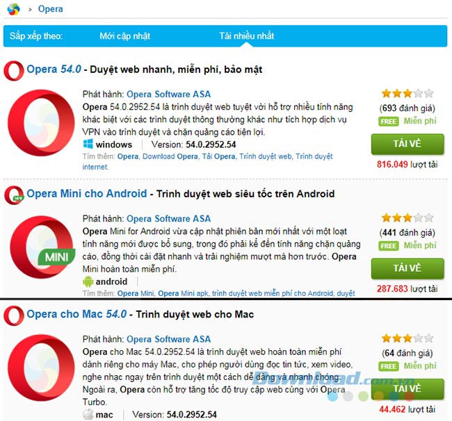 Chọn Tải về tương ứng với phần mềm cần sử dụng (vì có những phần mềm tương ứng nhiều hệ điều hành khác nhau, nên cần quan sát kỹ trước khi lấy về).