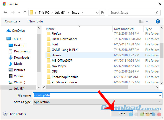 Bước 5: Cửa sổ Windows xuất hiện, chọn vị trí lưu phần mềm trên máy rồi Save lại.