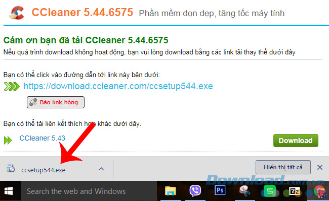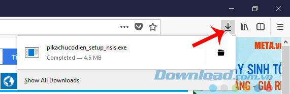 Click vào biểu tượng mũi tên quay xuống để mở file vừa tải.