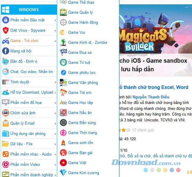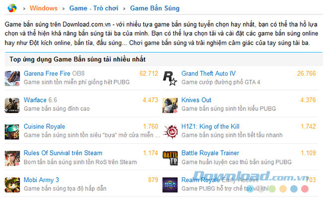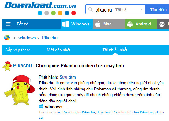 Click trực tiếp vào một game, hay ảnh đại diện một phần mềm để tải về.