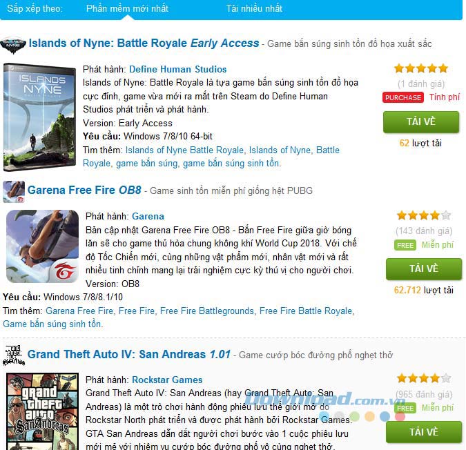 Bước 3: Click vào vào mục Tải về để lấy game, ứng dụng.