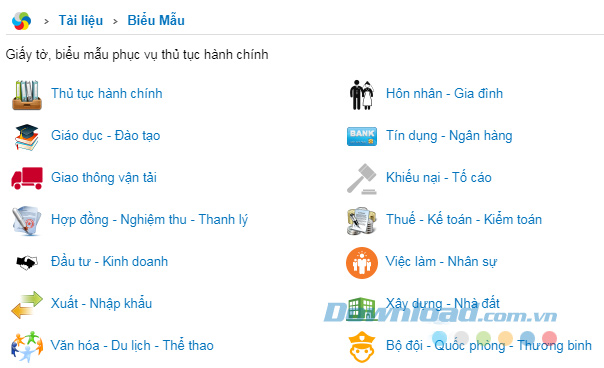 Danh mục tài liệu được hiển thị ngay bên dưới.
