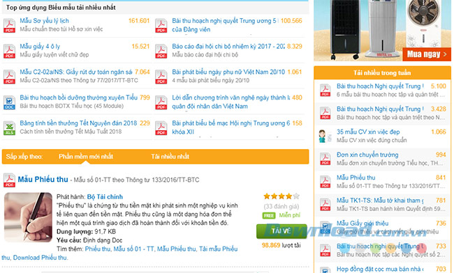 Kèm theo đó là các gợi ý về các biểu mẫu (hoặc game, phần mềm... tùy vào danh mục bạn chọn ở bước đầu) được sử dụng nhiều nhất, đứng top trong tuần hoặc trong tháng.