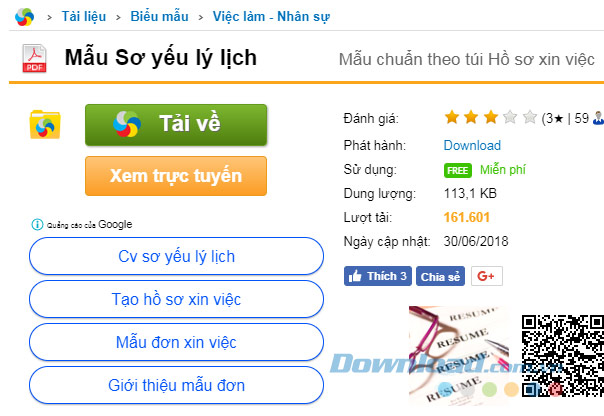 Chọn vào một mẫu, một phần mềm cần dùng, sau đó nhấn Tải về.