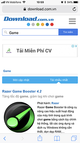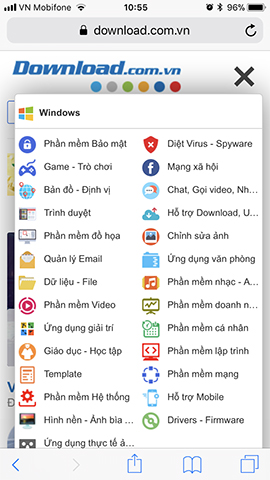 Nếu đang sử dụng smartphone, các bạn cũng có thể sử dụng các trình duyệt web mặc định của chúng để truy cập và download phần mềm trên trang chia sẻ miễn phí này. Như trong bài này là trình duyệt Safari của iOS, với các hệ điều hành di động khác, chúng ta làm tương tự.
