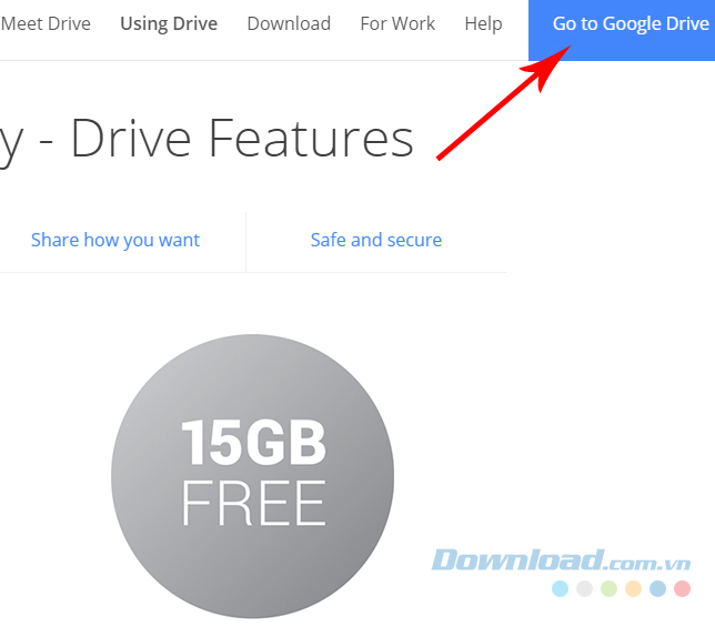 Bước 1: Truy cập vào trang chủ của Google Drive. Kiểm tra giao diện chính, nếu có chữ Using Drive nghĩa là tài khoản của bạn đã được kích hoạt và có thể sử dụng dịch vụ này. Click vào Go to Google Drive để bắt đầu đi tới trang chủ Google Drive và sử dụng.