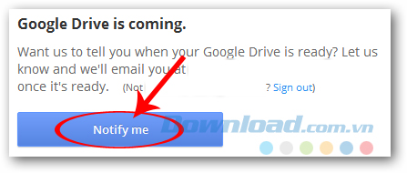 Bước 3: Còn nếu không thể sử dụng, trên trình duyệt sẽ xuất hiện mục Notify me. Click vào đó để kích hoạt Google Drive.