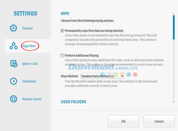 Trong phần Algorithm, hãy lựa chọn chế độ dọn dẹp phù hợp: