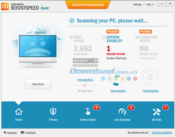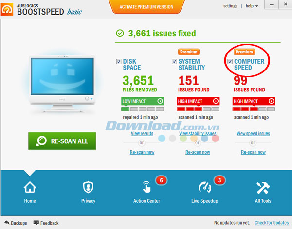 Ở đó, bạn có thể xem các tập tin rác, vấn đề liên quan đến độ ổn định của mình, vấn đề tốc độ, vv.