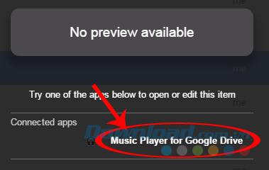 Giao diện quản lý dữ liệu bên trong Google Drive cũng được cải tiến để có thể phát nhác trực tiếp. Chọn chuột phải vào bài hát bất kỳ được lưu trong dịch vụ này, vào Open with / Music Player for Google Drive.