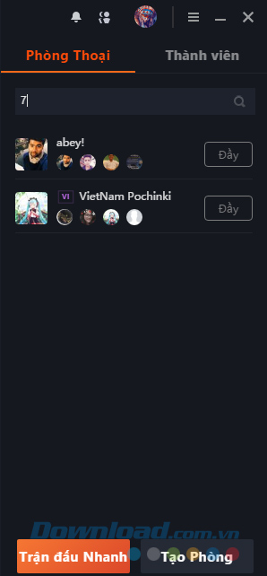 Với thanh tìm kiếm, bạn có thể nhập số phòng hoặc số ID của người chơi để tìm đến phòng chơi mà bạn mình đã tạo hoặc tìm chính xác một người chơi nào đó.
