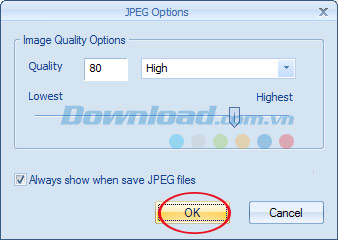 Cửa sổ JPEG Options xuất hiện, bạn có thể chọn chất lượng cho hình ảnh đầu ra rồi nhấn OK để lưu lại tấm thiệp Giáng sinh dưới định dạng JPEG.