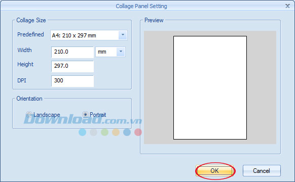 Cửa sổ Collage Panel Settings xuất hiện, tại mục Collage Size bạn có thể thay đổi một số thông số sau: