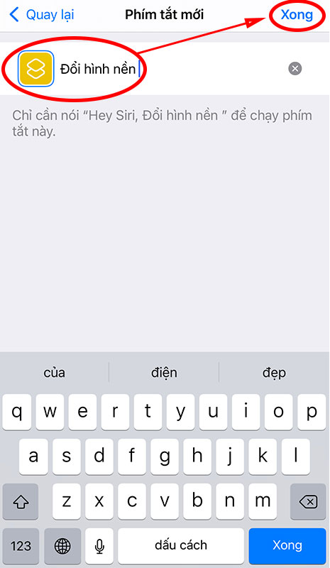 Đặt tên cho tác vụ ví dụ như Đổi hình nền sau đó nhấn Xong.