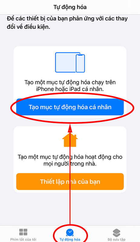 Tiếp theo các bạn cần tạo mục tự động hóa cho tác vụ đổi hình nền. Nhấn chọn tab Tự động hóa phía dưới màn hình sau đó nhấn nút Tạo mục tự động hóa cá nhân.