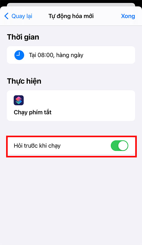 Tắt chức năng Hỏi trước khi chạy sau đó nhấn nút Xong.