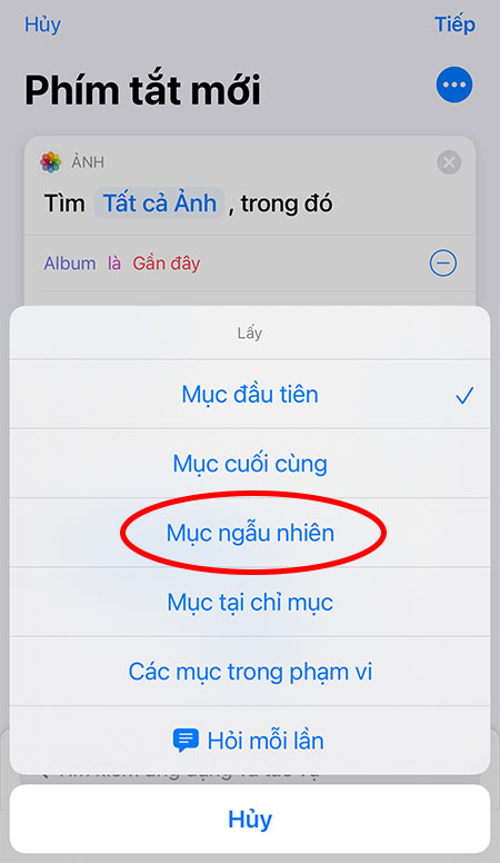 Nhấn chọn tiếp vào Mục đầu tiên để đổi thành Mục ngẫu nhiên.