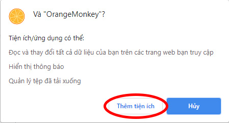 Hộp thoại xác nhận hiện ra, các bạn nhấn chọn Thêm tiện ích để thêm OrangeMonkey vào Chrome.
