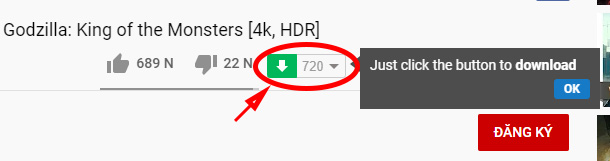 Sau khi cài đặt xong, các bạn hãy mở link video Youtube lên. Ở ngay phía dưới của video sẽ hiện lên nút tải màu xanh lá cây, các bạn hãy nhấn vào nút này để tải video ngay. Hoặc nhấn vào mũi tên nhỏ bên cạnh nút tải để chọn độ phân giải mà bạn cần tải.
