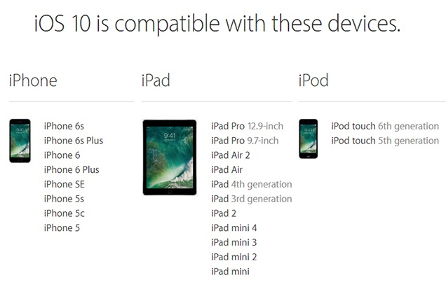 Theo thông tin ban đầu, tất cả các thiết bị iOS 9 sẽ đều có thể nâng lên được iOS 10, cụ thể: