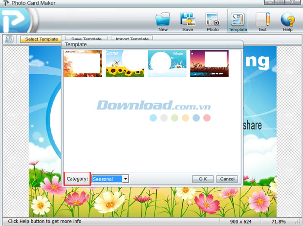 Sau đó, truy cập Category để lựa chọn chủ đề phù hợp với thiệp mừng của bạn.