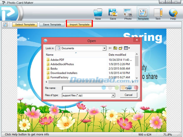 Hoặc, bạn có thể tự nhập template của riêng mình khi nhấn nút Import ở phía trên cùng của cửa sổ.