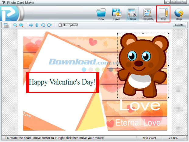 Tìm hiểu thêm » Hỗ trợ qua ZaloMùa lễ tình nhân đang đến dần cùng thời điểm sắp chuyển giao giữa năm cũ và năm mới. Chính vì thế, bầu không khí ở khắp nơi càng trở nên nhộn nhịp. Để giúp tình cảm đôi lứa càng thêm bền chặt, hôm nay Download.vn sẽ hướng dẫn bạn cách thiết kế thiệp mừng ngày lễ tình nhân bằng ứng dụng Photo Card Maker để dành tặng cho một nửa yêu thương của mình.