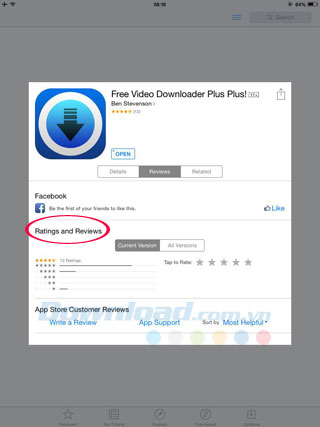 Chọn mục Rate or Review the App trên trang Settings để chuyển về cửa hàng App Store, tại đây bạn có thể đánh giá hoặc bình chọn ứng dụng. Đánh giá từ 1 đến 5 sao và bình chọn tích cực cho ứng dụng để thông tin này xuất hiện trên App Store.