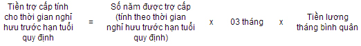 Tiền trợ cấp cho số năm nghỉ hưu trước hạn tuổi tính theo công thức sau: