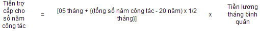 Tiền trợ cấp cho số năm công tác tính theo công thức sau:
