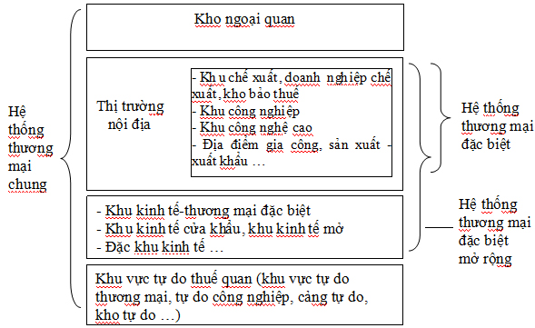 - Hệ thống thương mại đặc biệt sử dụng trong thống kê hàng hóa xuất khẩu, nhập khẩu bao gồm: hàng hóa đi vào hoặc đi ra khỏi lãnh thổ Việt Nam trong thị trường nội địa và khu chế xuất, khu công nghiệp, khu công nghệ cao, địa điểm gia công, sản xuất xuất khẩu …